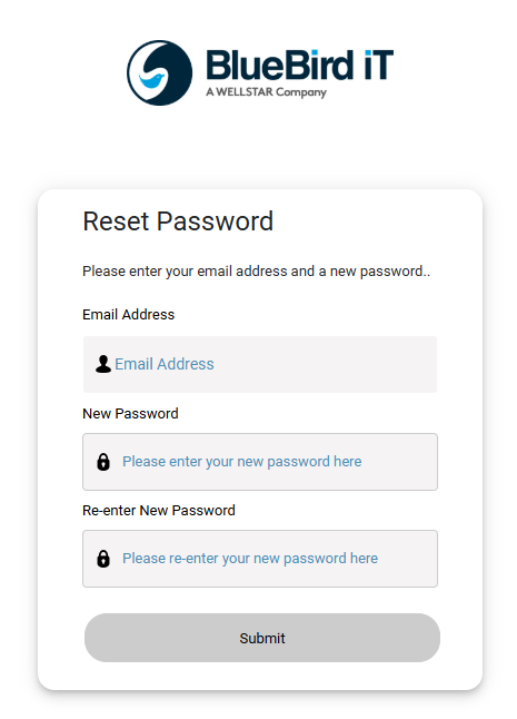 If your email address is already registered with BlueBird iT as a client contact for your clinic, you will receive an email with a temporary link to the Reset password page. Use that link to set your password.